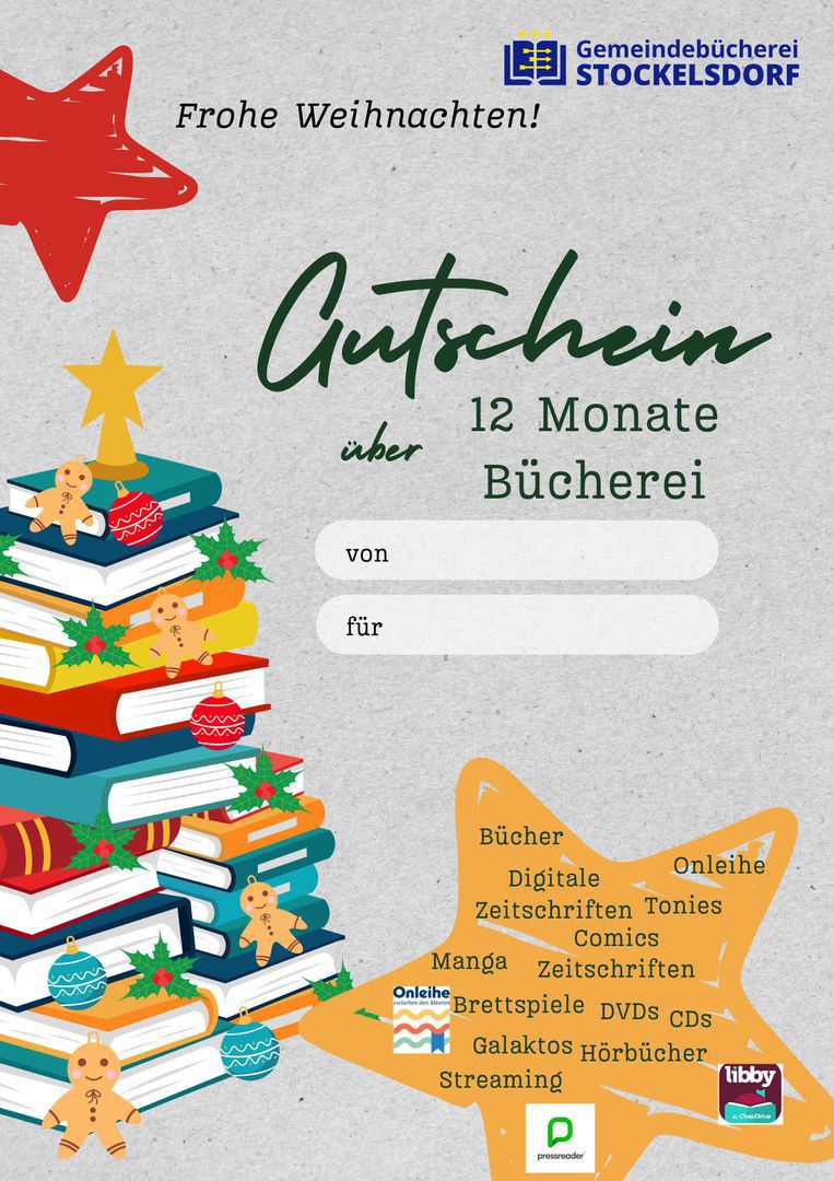 Ihr Gutschein für die Bücherei ist mehr als ein Geschenk – es ist ein Jahr voller Geschichten und unbegrenzter Möglichkeiten!