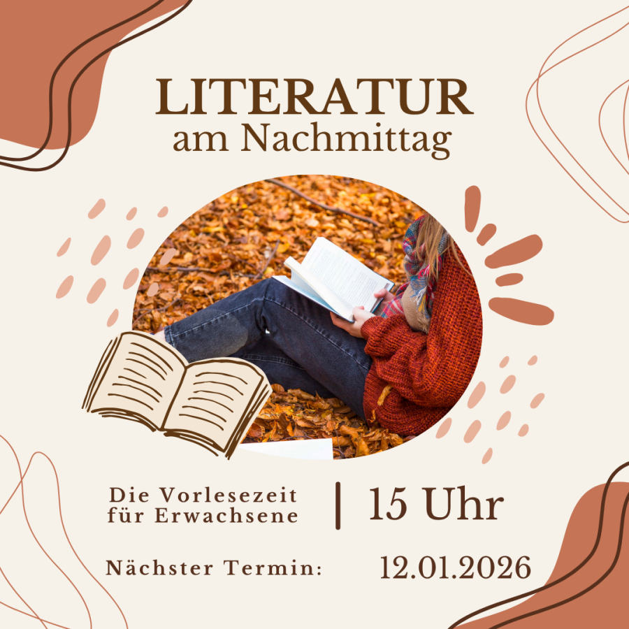 wir laden Sie herzlich ein zu unserer Veranstaltung „Literatur am Nachmittag – Die Vorlesezeit für Erwachsene“.
