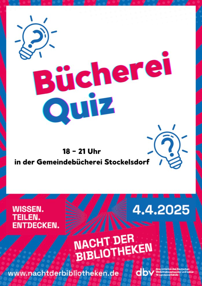 Bereit für eine spannende Reise durch die Welt des Wissens? Beim Bibliotheksquiz der Nacht der Bibliotheken heißt es: Augen auf und Köpfe an! In Teams werdet ihr knifflige Fragen beantworten und euer Wissen unter Beweis stellen. Neben einer tollen Überraschung für das Siegerteam gibt es auch Getränke und Snacks.